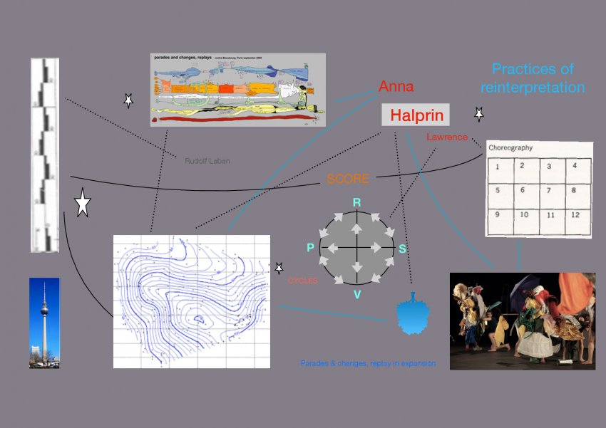 Anne Collod a lié pour les étudiant·es son expérience du travail d’Anna Halprin aux enjeux de ses projets de recréation. Elle a tissé dimension pratique et dimension réflexive, et a proposé un enseignement en trois temps : Enquêter – documenter, Déchiffrer - Interpréter, et Réinterpéter - spéculer.